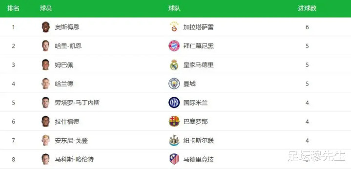 奥斯梅恩状态火热,4轮打进6球,傲视哈兰德姆巴佩凯恩。虽然这只是即时数据,但以奥斯梅恩和加拉塔萨雷目前的状态,未来几个月我们依然可以期待。加拉塔萨雷之所以不那么引人注意,其实很大程度上是因为第一轮他们1:5惨败法兰克福。但4轮过后,加拉塔萨雷的成绩早就超过了法兰克福,而且逐渐走入正轨。后面四轮,加拉塔萨雷的对手分别是圣吉罗斯联合,摩纳哥,马竞,曼城。打圣吉罗斯联合问题不大,打马竞有恐怖主场优势,有获胜希望。最大的难点在于最后一轮,客战曼城。不过,如果届时曼城已经建立起足够的优势,加拉塔萨雷拿1分也是有可能的。总之,加拉塔萨雷是很有希望打进附加赛的。一旦成功,他们的恐怖主场优势将起到至关重要的作用,打进十六强不是空想。在如今欧冠的生态下,像加拉塔萨雷这样的球队,只要打进八分之一决赛,就将彻底坐实本赛季欧冠第一黑马。